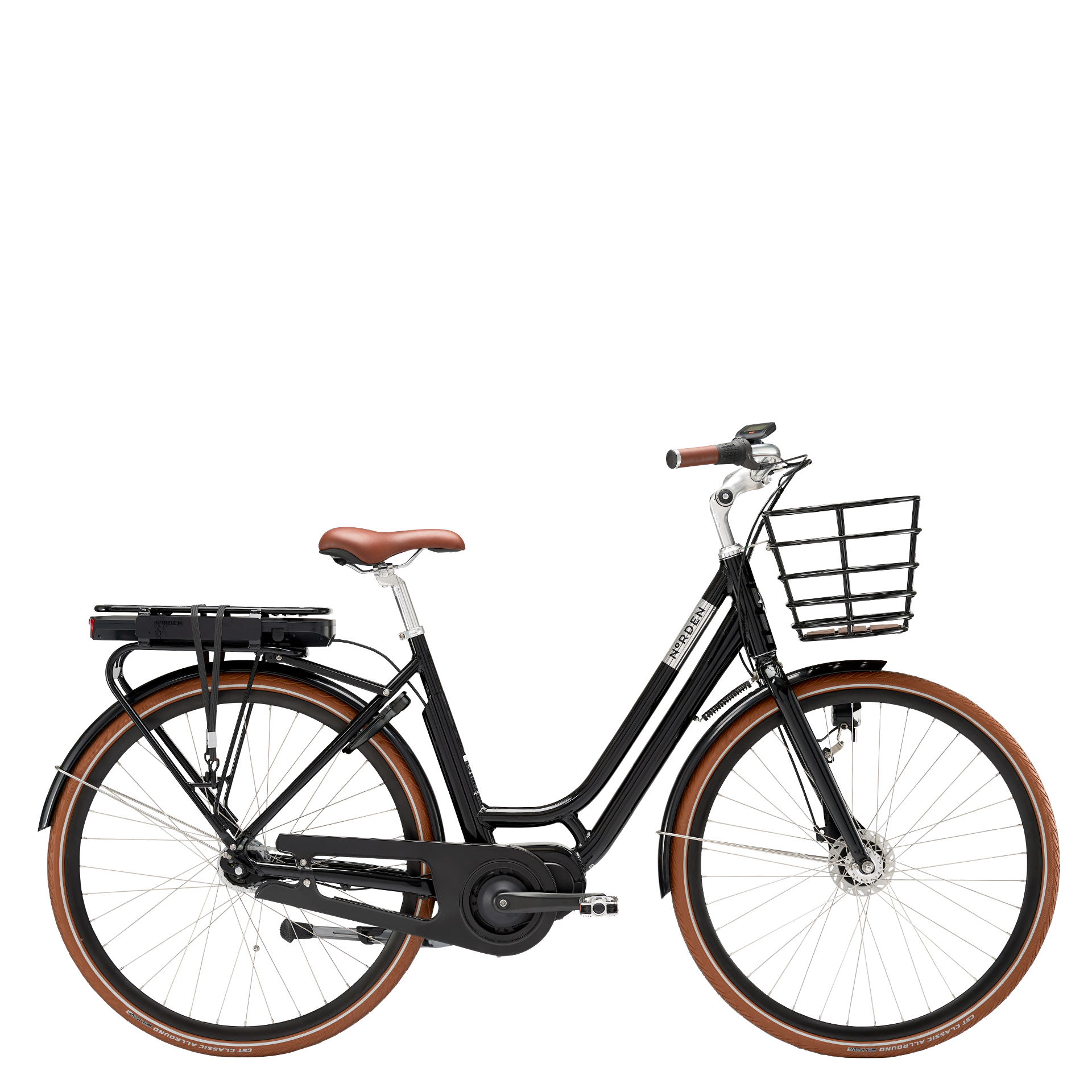 ELLINOR har indpræget NORDEN logo i bagskærmen og udskåret NORDEN logo i bagagebæreren, eksklusivt aluminiumsstel, AVS bagagebærer, samt skærme og fælge i cyklens farve, som fuldender den klassiske designoplevelse.